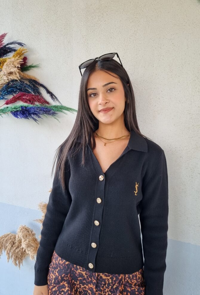 Siyah gold düğmeli triko